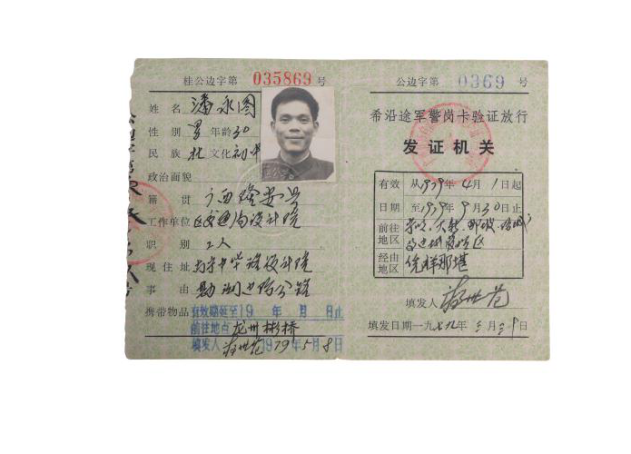 前往边境地区必需的通行证件。