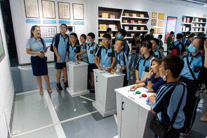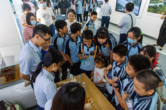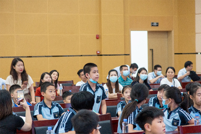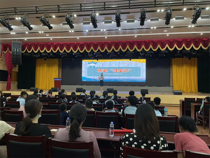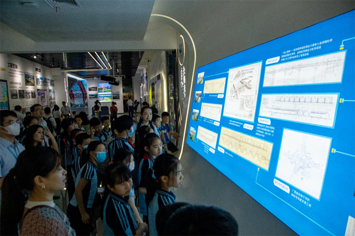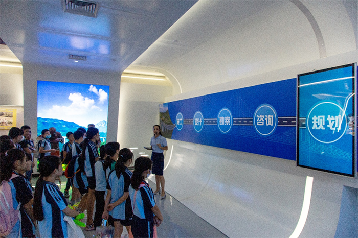 活动伊始,全体师生、家长来到广西交通设计科普馆二楼的影视报告厅,观看科普宣传短片《桥梁寻宝记》,该短片由交通设计集团员工创作完成,并荣获2019年全国公路优秀科普作品三等奖。在观看过程中,同学们聚精会神,被眼前世界各地、各具特色的精美桥梁所深深吸引,当介绍来自广西的世界级桥梁时,同学们眼神中流露出骄傲与自豪。在互动环节,面对科普馆讲解员刘莹提出的各种小问题,同学们也纷纷踊跃回答。