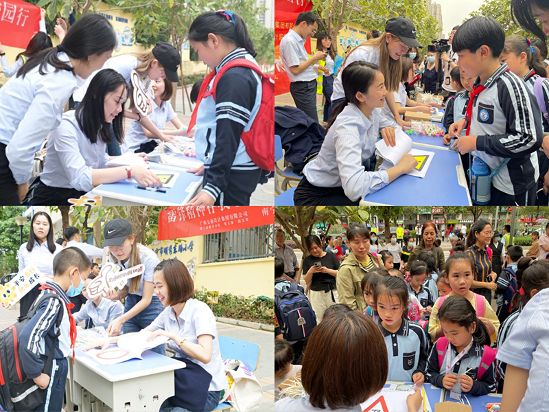 活动当天,为让学生了解交通规则,提高交通安全意识,减少交通事故发生,志愿服务小组专门在校门口设立交通安全知识宣讲点,通过生动形象的展板展示、交通标志认知小游戏、发放交通知识书签等方式,讲解各种交通标志含义、需要遵守的交通规则,进一步加深学生对交通安全知识的印象。活动现场热火朝天,尤以“户外课堂”反映最为热烈,学生们纷纷驻足展板前专注听讲、积极参与答题小游戏,甚至有的学生为答题通关先后排队五次参与答题。