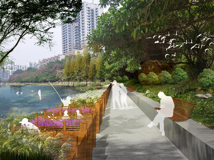 设计理念:本项目定位为城市滨水廊道景观工程,景观步道作为绿色纽带串联起灵山著名景区六峰山和双鹤公园,景观意义十分重大。