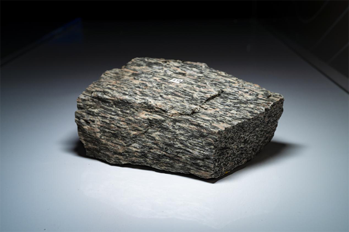 条带状混合岩是脉体呈条带状平行分布于基体的片理中的混合岩。具有特征的条带状构造。这种混合岩的基体一般有较好的片理,常见为云母片岩和角闪片麻岩、黑云母片麻岩等。脉体的物质成分以花岗质为主,厚度不大,且较均匀,在基体中可平行延伸很远(基体片理不发育时,则脉体的厚度有变化,且延伸不远,并可斜交片理)。浅色的岩脉物质与暗色的残留基体部分之间,呈条带状互层,两类条带的宽窄变化及其相对含量不定,但一般基体仍占主导地位(>50%)。
